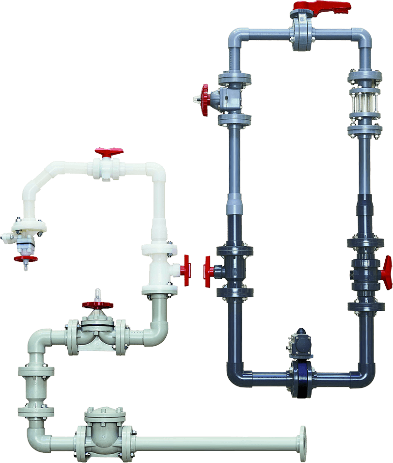 閥門系列產(chǎn)品如:隔膜閥、蝶閥、球閥、截止閥、止回閥、耐腐蝕泵等。主要材質(zhì)有CPVC、UPVC、PVDF、PPH、FRPP等。